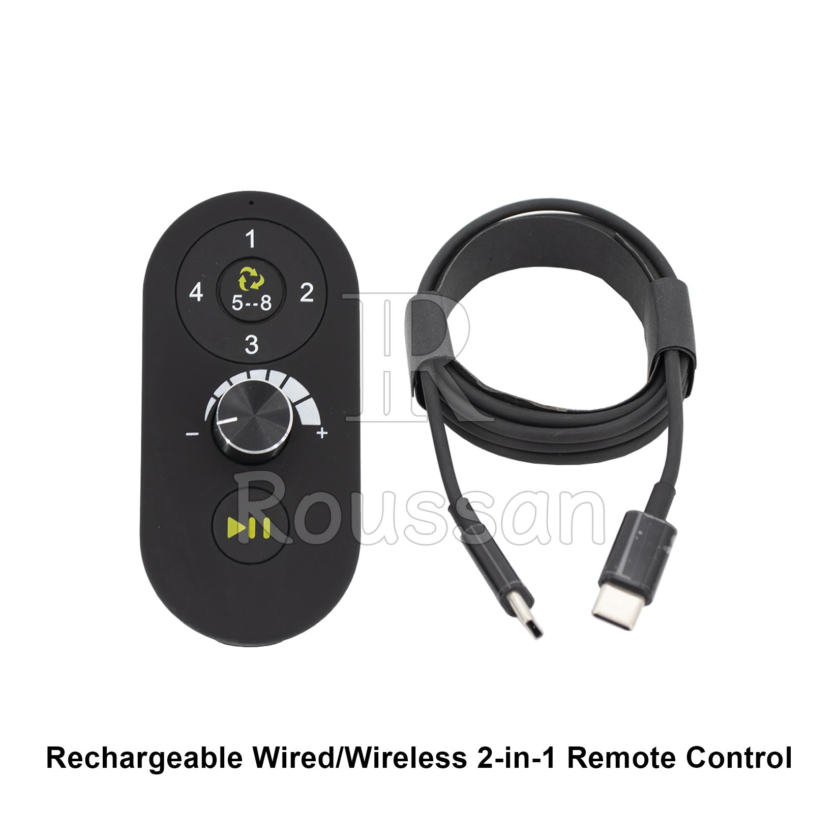 - Wired & wireless 2-in-1 handheld remote control with push button start/stop and built-in modes.